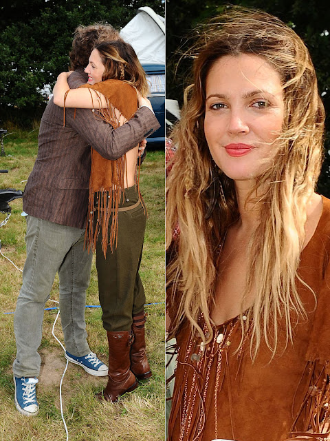 Drew Barrymore and Justin Long backstage at the Virgin Media V Festival