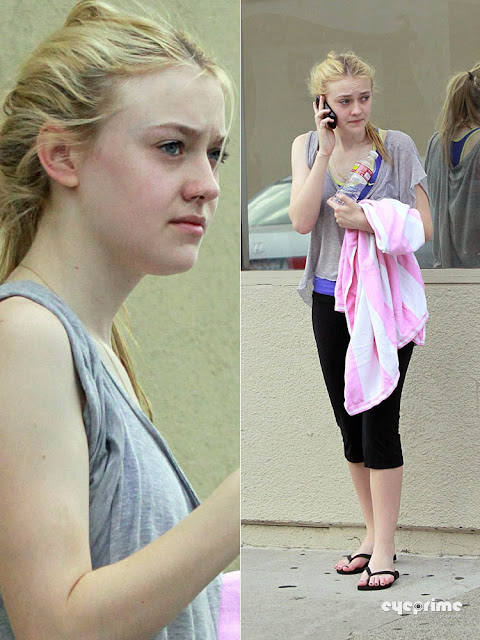 Dakota Fanning waits outside the Gym in Studio City, Oct 2