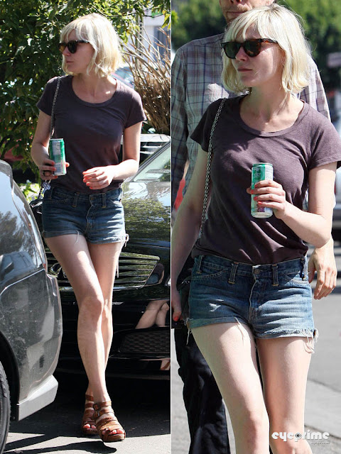 Kristen Dunst was spotted out shopping on La Brea and getting some coffee at M Cafe in West Hollywood wearing very short shorts with a new beau and new hair. October 12, 2010.