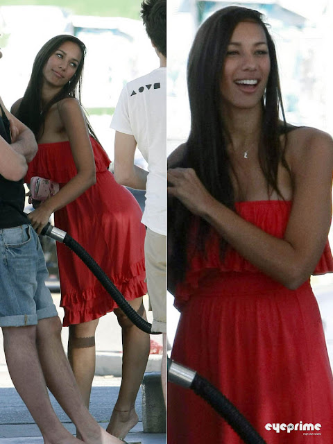 Singer Leona Lewis and some Friends filling her Range Rover up with Gas on November 12 in Los Angeles