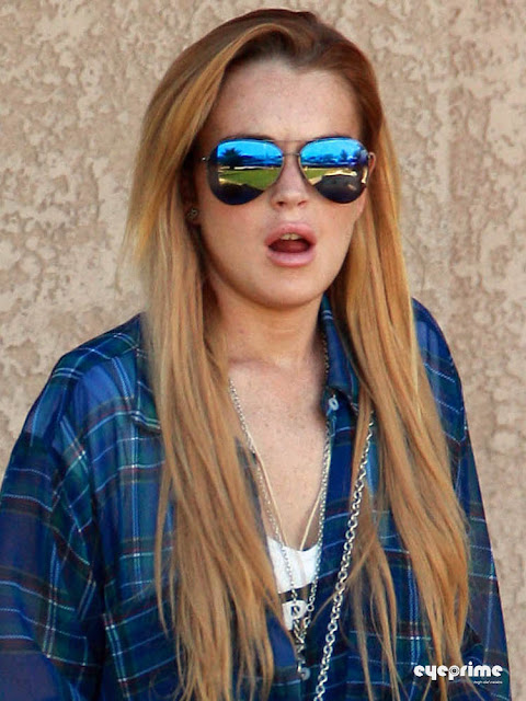 Lohan looked fashionable, letting her long reddish blonde hair down and highlighting her standard outfit of boots, leggings and flannel shirt with a Chanel necklace.